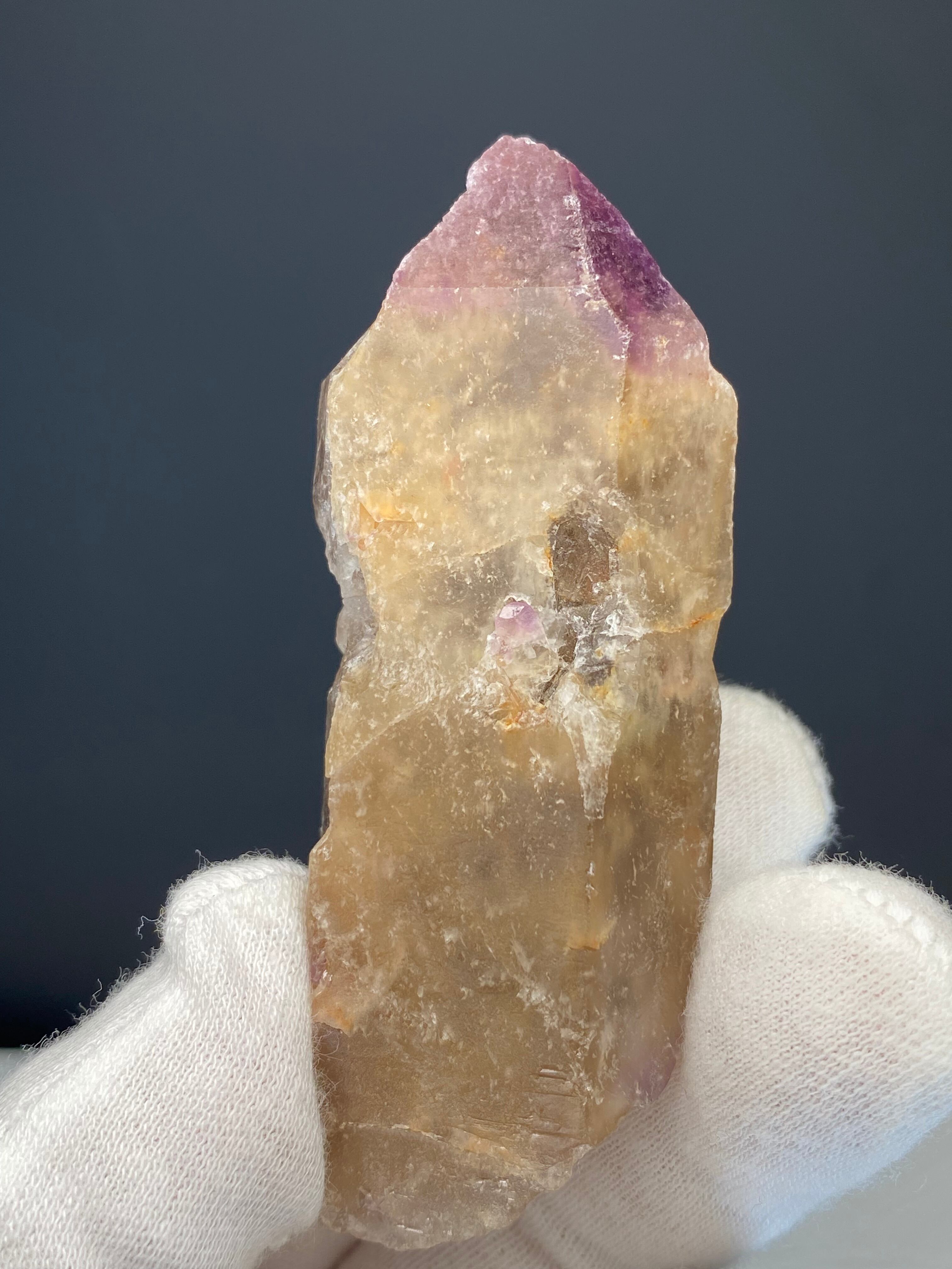 透明感の高いレムリアンクォーツに、アメジストの優しいヴェールがかかり、