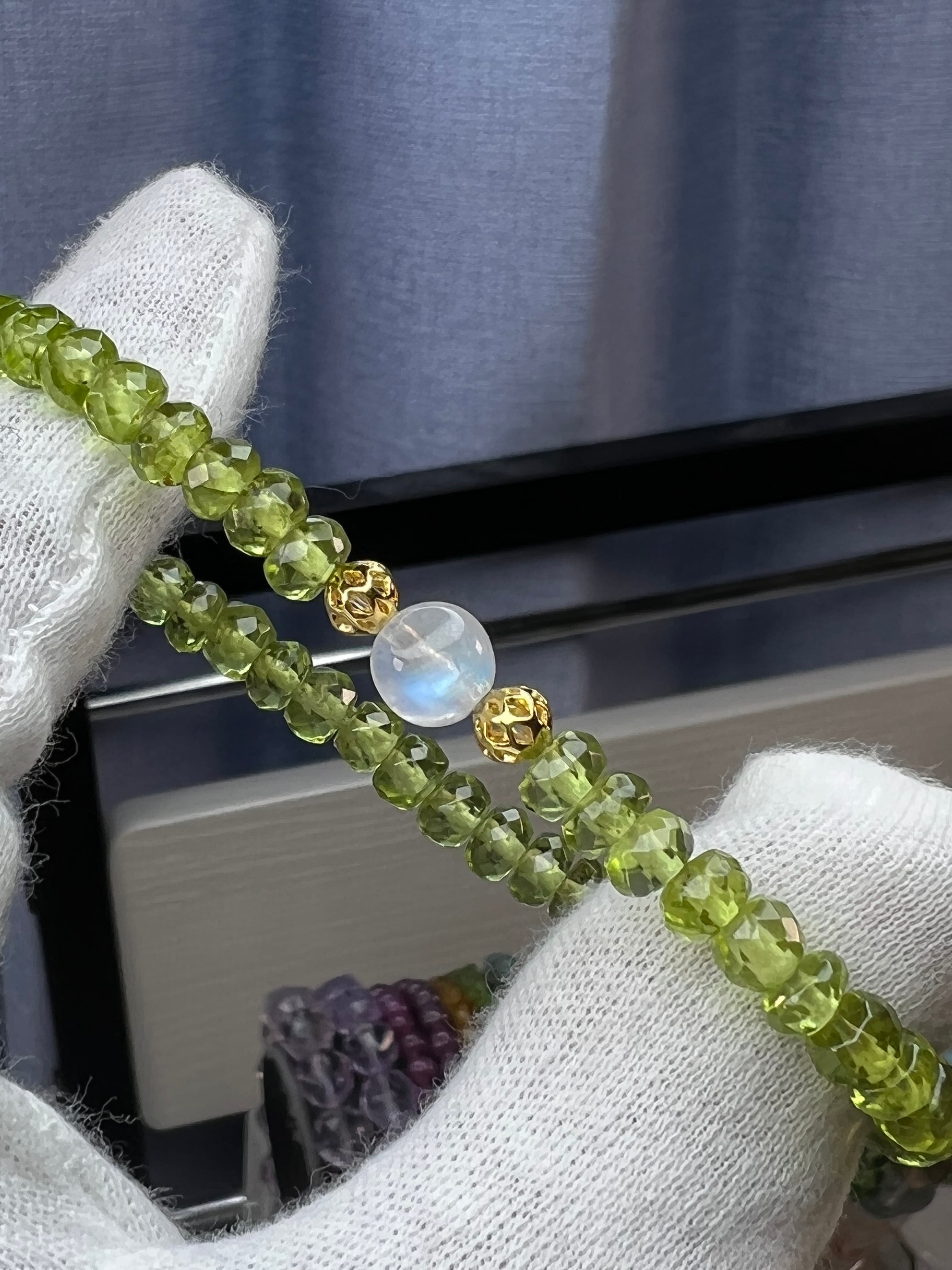 k様ご成約商品です❗✨ai.stoneオリジナル✨ブルームーンストーン&ペリドットボタンカットブレス