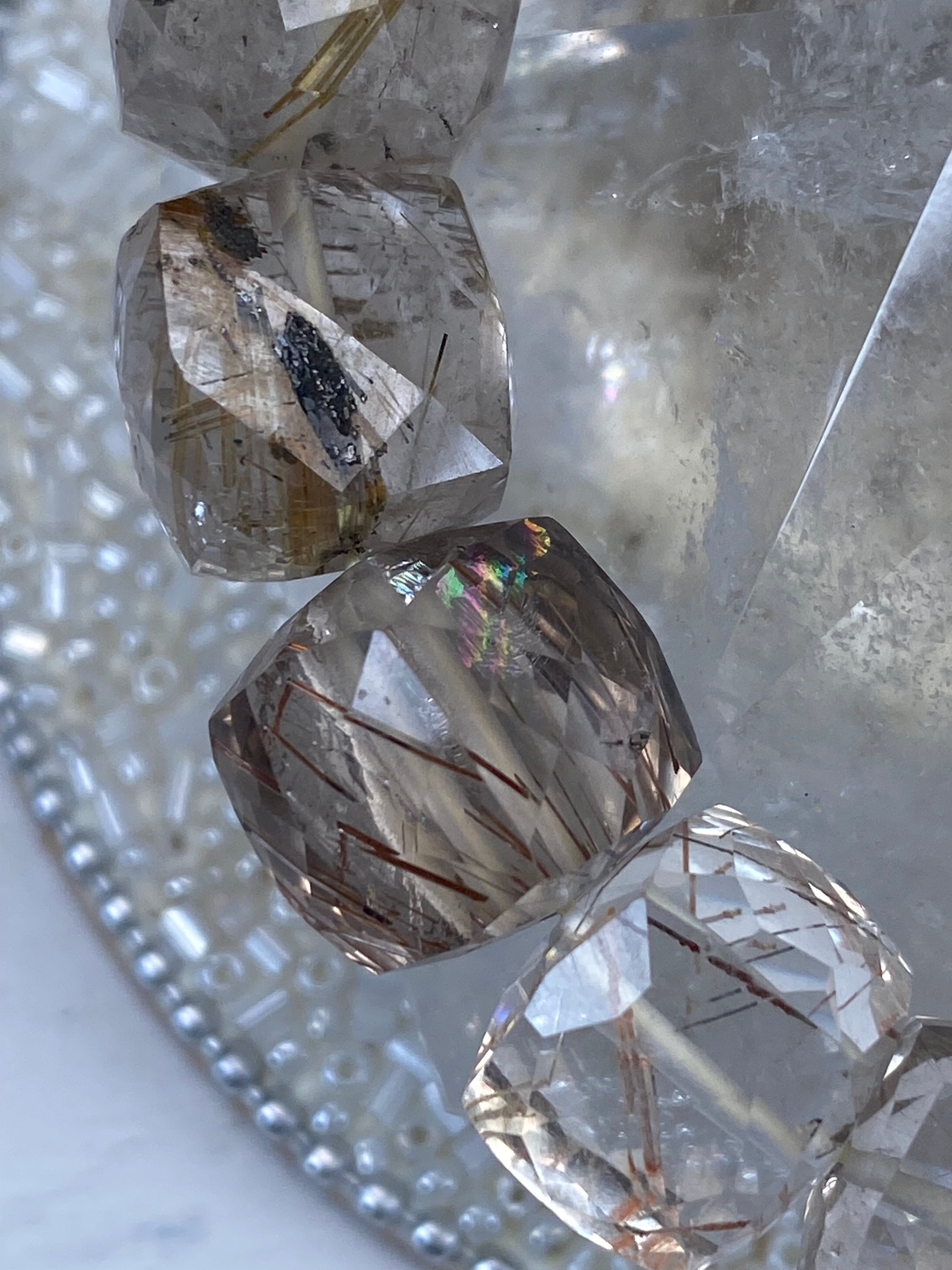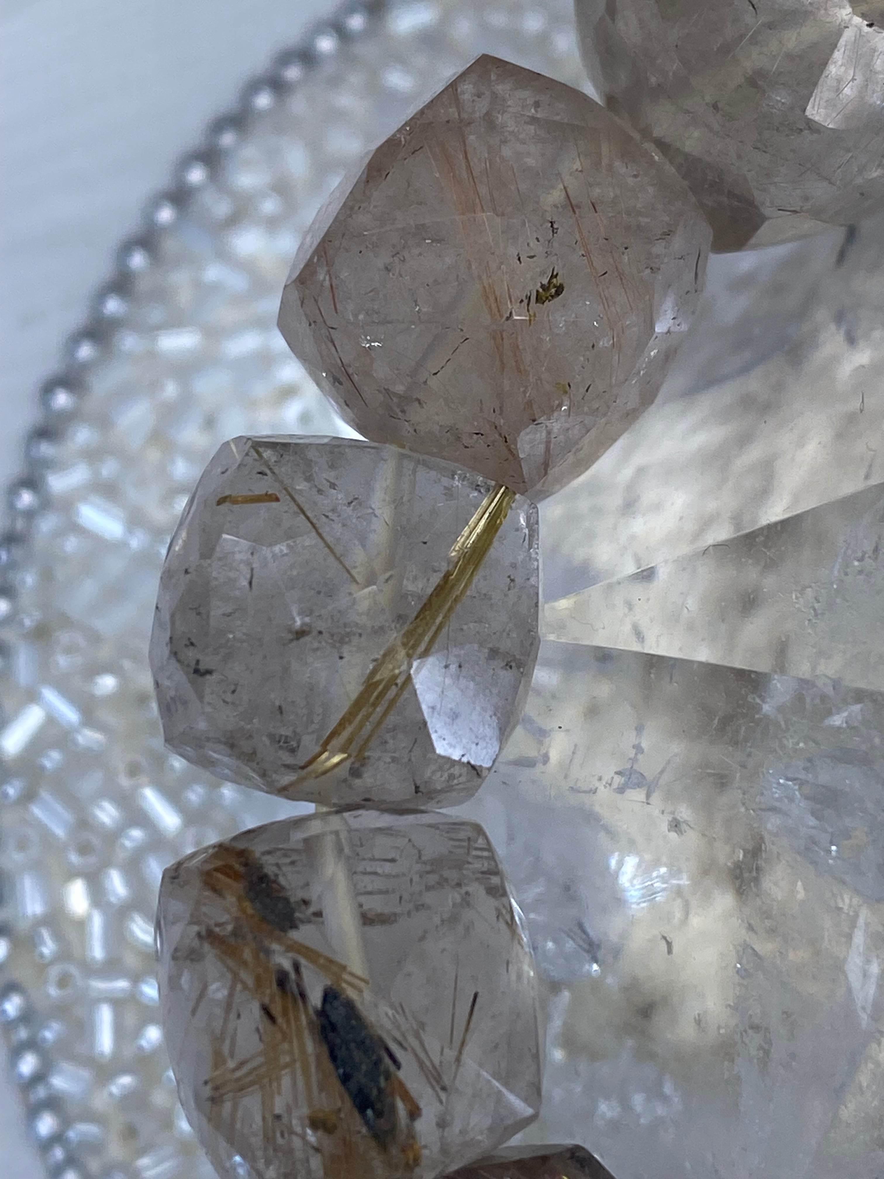 透明度抜群の水晶の中に、繊細なゴールドの針が広がっています!